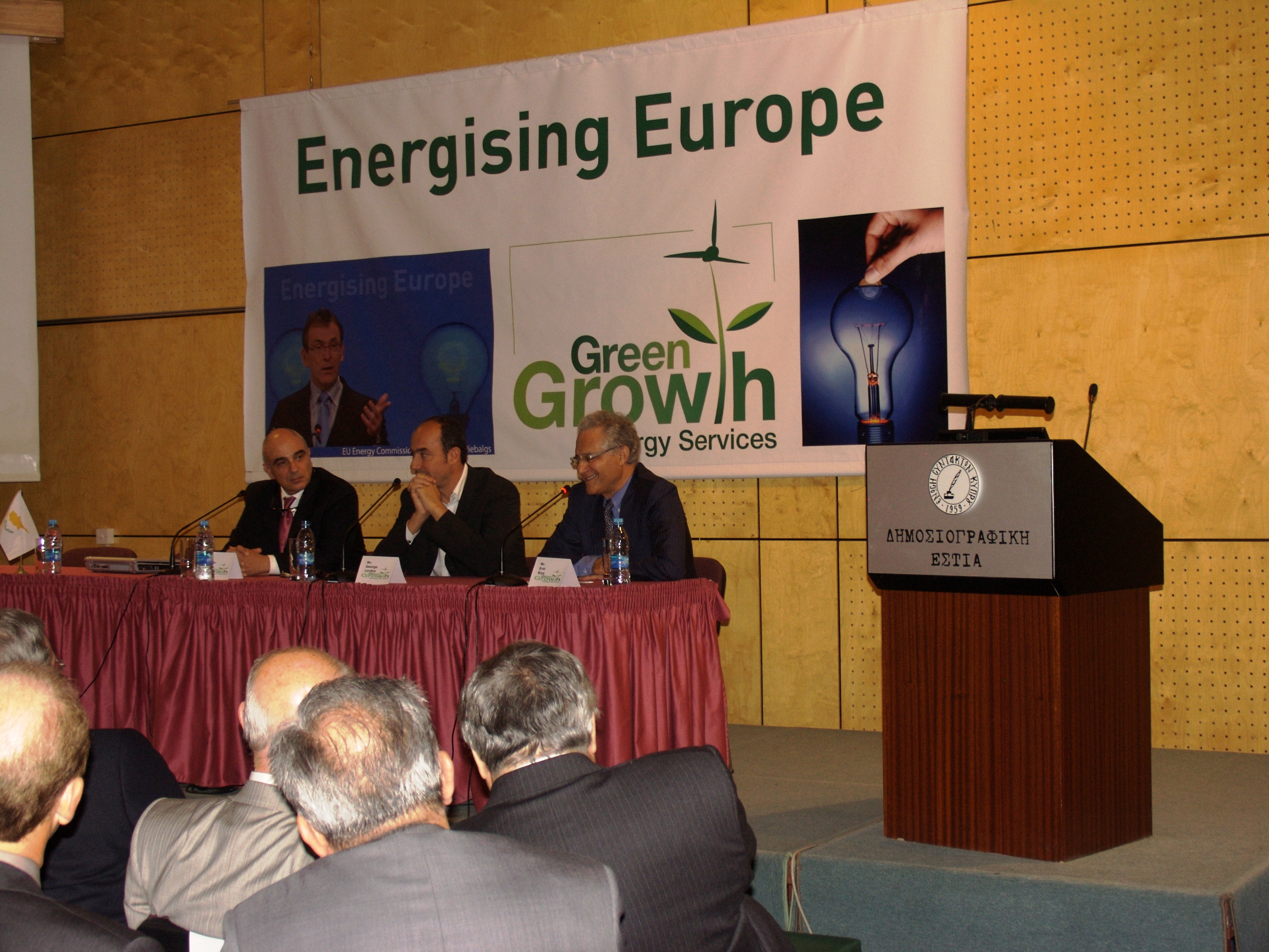 In October 2009, the company was retained by a major bank to carry out an energy audit of its prestigious headquarters building in Nicosia. To mark the entry of the company into the Cypriot market, the founders held a well-attended speaker evening with the theme Energising Europe on 17 November 2009, with presentations by the Minister of Trade, Industry & Tourism, the EU Representative the Commisioner for the Environment and the company founders. Green Growth Energy Services were honored by the presence of prominent representatives from both communities, including former President George Vassiliou, Former Minister of Agriculture Costas Themistocleous, the heads of the Greek and Turkish Cypriot Chambers of Commerce and the head of the Turkish Cypriot Association of Electrical Engineers.